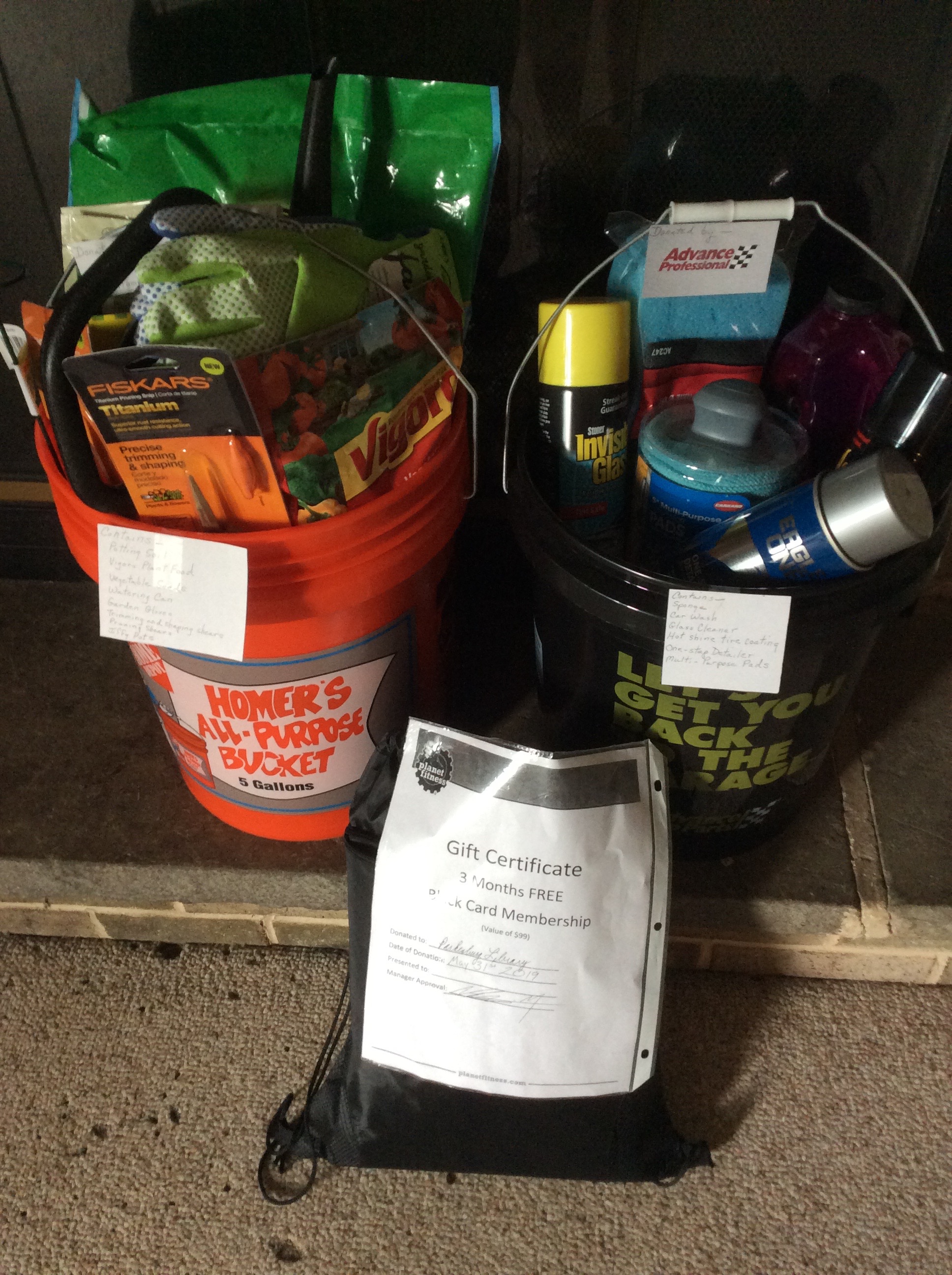 One is a bucket of gardening supplies; another is a bucket of car wash and detailing supplies; and the third is a free 3 month black card membership at Planet Fitness. These items can be seen at the library where tickets are on sale from now til Friday, June 14th.
