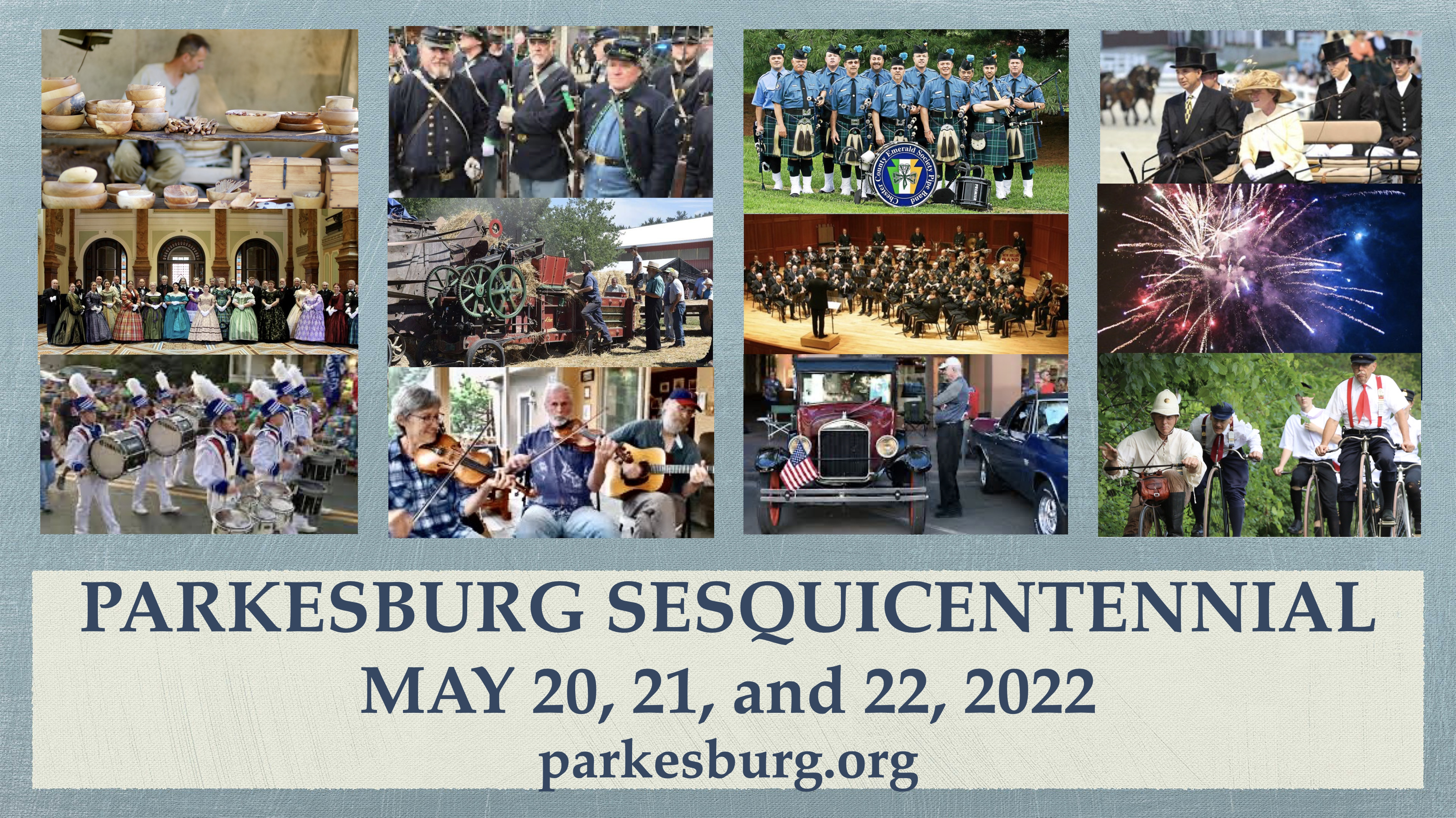 Parkesburg is hosting an historic action-packed three-day Sesquicentennial Celebration on the weekend of May 20, 21 and 22, 2022 and you are invited!